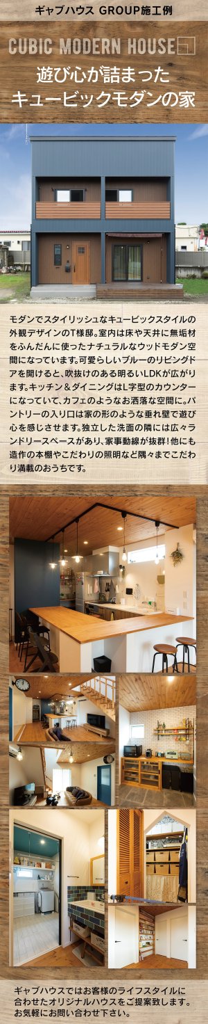 自然素材をなるべく使ったオーダーメイドの家づくりを心掛けています。光熱費を抑える為に断熱性能にもこだわっています。本物の素材で手づくりのキッチン・造作洗面など、オリジナルの空間もご提供しています。新築(注文住宅)・リフォーム・リノベーションのことは、お気軽にご相談下さい。岩手県で住宅を建てるなら、岩手県花巻市のギャブハウス花巻にお任せ下さい。